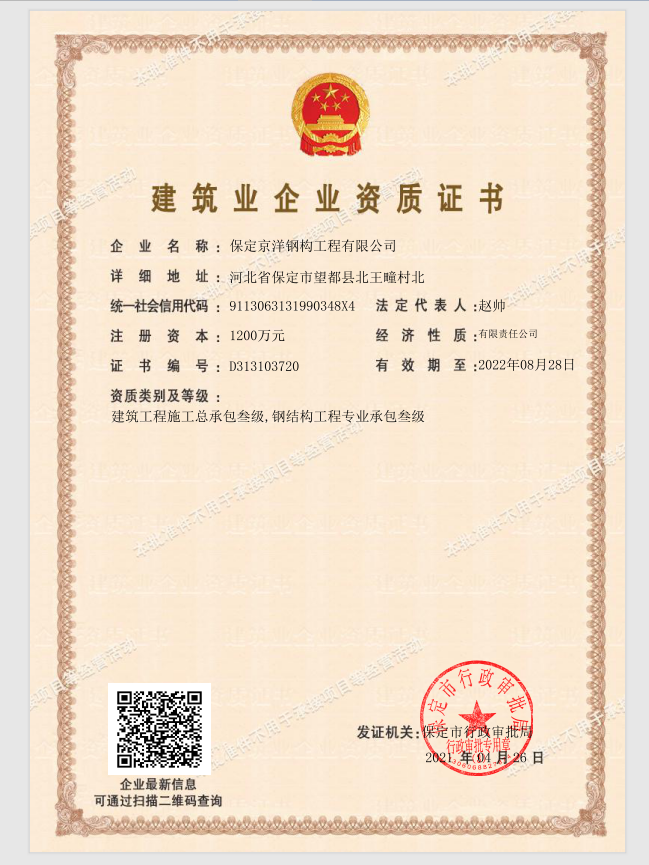 公司主要致力于鋼結(jié)構(gòu)設(shè)計、制作、安裝、銷售為一體的鋼結(jié)構(gòu)施工專業(yè)企業(yè)。成立于2010年,注冊資金1200萬元。公司擁有國內(nèi)先進(jìn)的數(shù)控自動焊接設(shè)備、H鋼結(jié)構(gòu)生產(chǎn)線、CZ鋼快速切換一體機(jī)、自動剪切壓板機(jī)等,優(yōu)良的制作加工車間及檢測設(shè)備。公司秉承“質(zhì)量求生存,管理出效益”發(fā)展理念,組建了一支高素質(zhì)、高水平的團(tuán)隊(duì)以及責(zé)任明確、職責(zé)清楚、獎罰分明的管理體系。